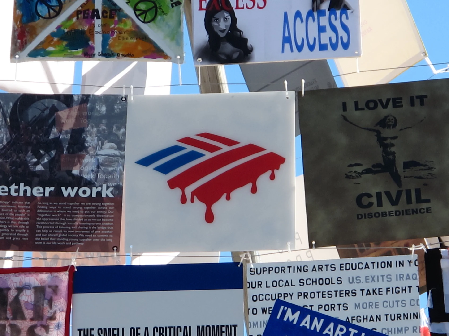 This is an ongoing installation piece that was originally part of the Artists' Tower of Protest. Below is one example of how the piece has been re-installed at site-specific properties around Los Angeles, CA.
