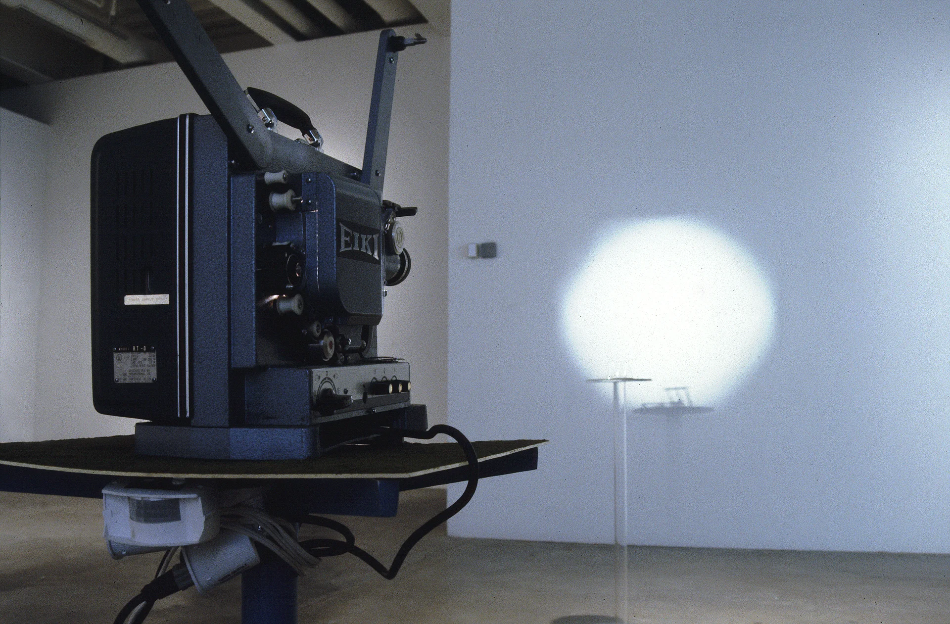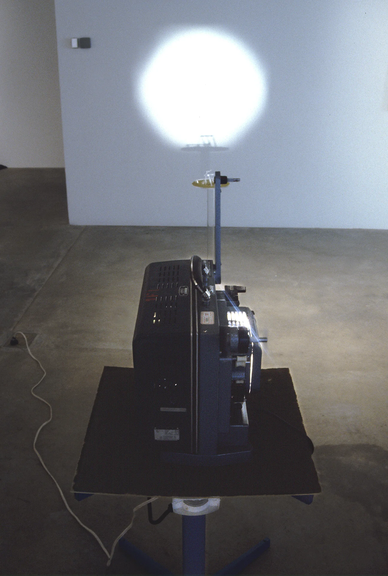 My Own Personal Nuclear Family is a light projection sculpture-installation that was shown at the Institute of Contemporary Art (ICA) in Philadelphia, PA in the summer of 1998. When viewers approached the installation, a motion sensor would activate and supply 30 seconds of power to the 16mm film projector. This would draw the viewer closer to the artwork in order to inspect it. Once the viewer stood still for a period of time, the artwork would power off. As the viewer attempted to move away from the artwork, their actions would activate the sensors and the imagery would begin to project onto the wall again. This often piqued the interest of the viewer as they realized their movements directly affected the artwork. The concept behind this was to reinforce the notion that no matter how hard some try to achieve something we desire; at best we only get a glimpse.